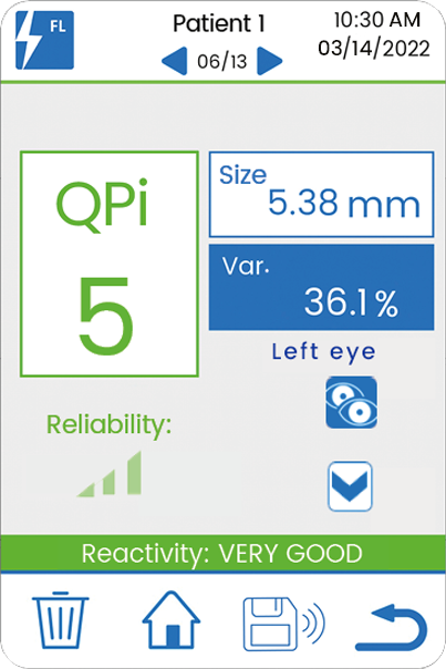 The NeuroLight device translates pupillary response into a clear, objective QPI score, providing immediate clinical insights: