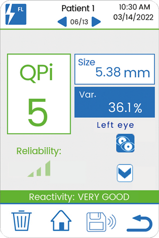 • Clear QPI Score Output: Converts complex pupillary responses into an easy-to-read Quantitative Pupillometry Index (QPI) score, simplifying interpretation and facilitating rapid identification of neurological anomalies.
