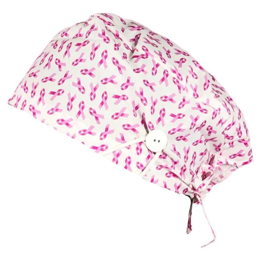 This Short Hair Surgical Cap features Buttons and Adjustable Laces, providing a practical and secure solution for keeping your mask in place. The unique design of  pink bows - breast cancer adds a touch of style, while the adjustable laces offer both functionality and comfort.