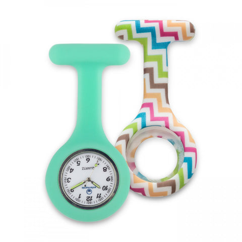 Silicone Nurse Fob Watch Glow in the Dark Aqua + Teal ZigZag Silicone Extra