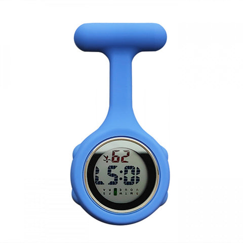 Silicone Nurse Fob Watch Quartz Machinery with Brooch Glow in the Ceil Blue