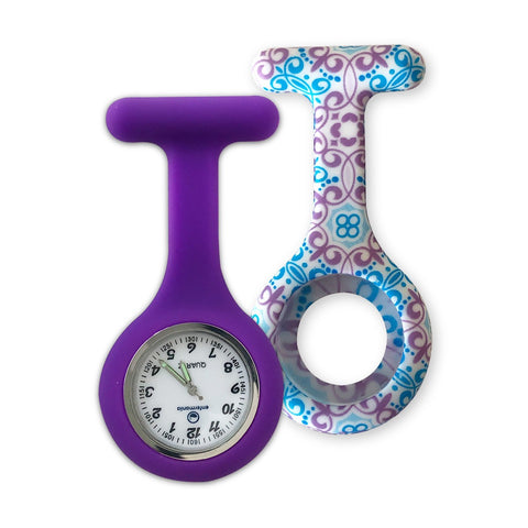 Silicone Nurse Fob Watch Glow in the Dark Violet + Teal Blue Cashmere Silicone Extra