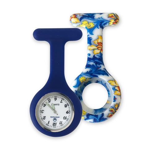 Silicone Nurse Fob Watch Glow in the Dark Sky Blue + Teal Colourful Flowers Silicone Extra