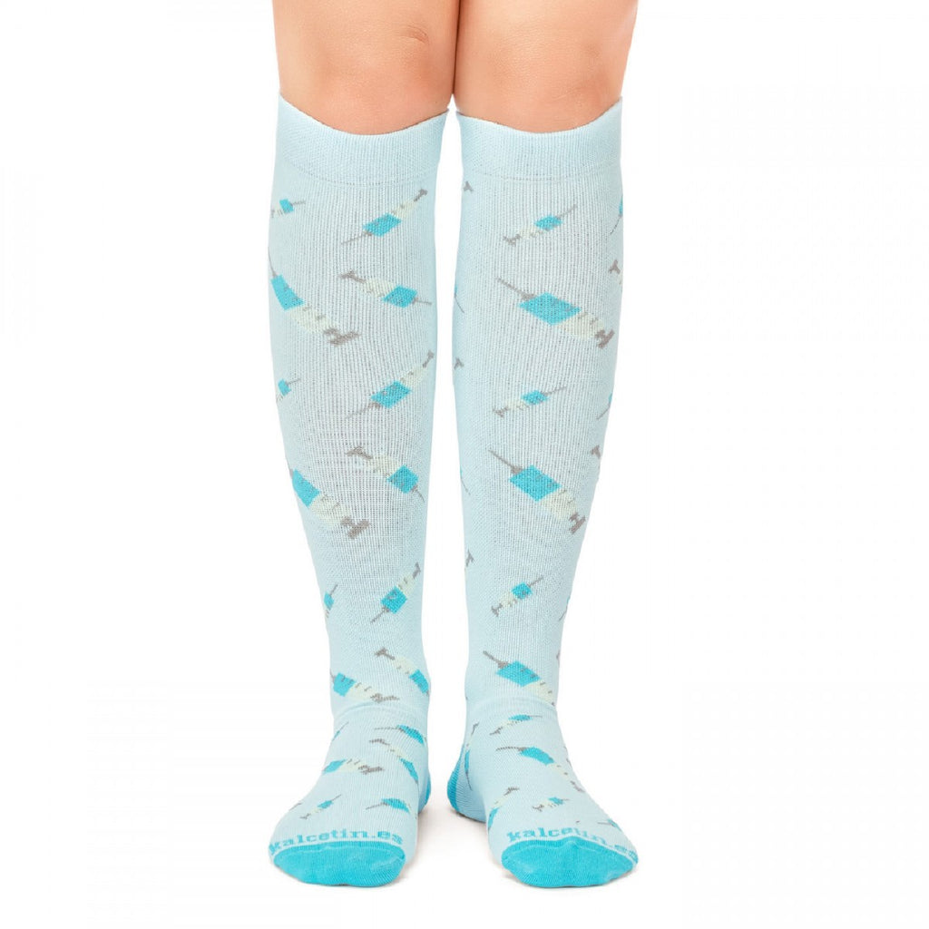 Certified Compression Socks Nurse Doctor Hospital Work & Travel Syringes Blue Unisex
