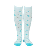 The Blue Compression Socks are carefully crafted for medical practitioners and individuals alike, incorporating a blend of cotton and lycra materials. Featuring a unique syringe-inspired pattern design, these socks offer superior comfort and fashionable flair for extended periods of work and travel.