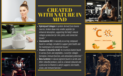 • Comprehensive Nutrient Blend: Combining collagen and glucosamine with a synergistic mix of essential vitamins and minerals, each carefully selected for their EFSA-approved health benefits related to energy, immunity, cognitive function, and overall wellbeing.