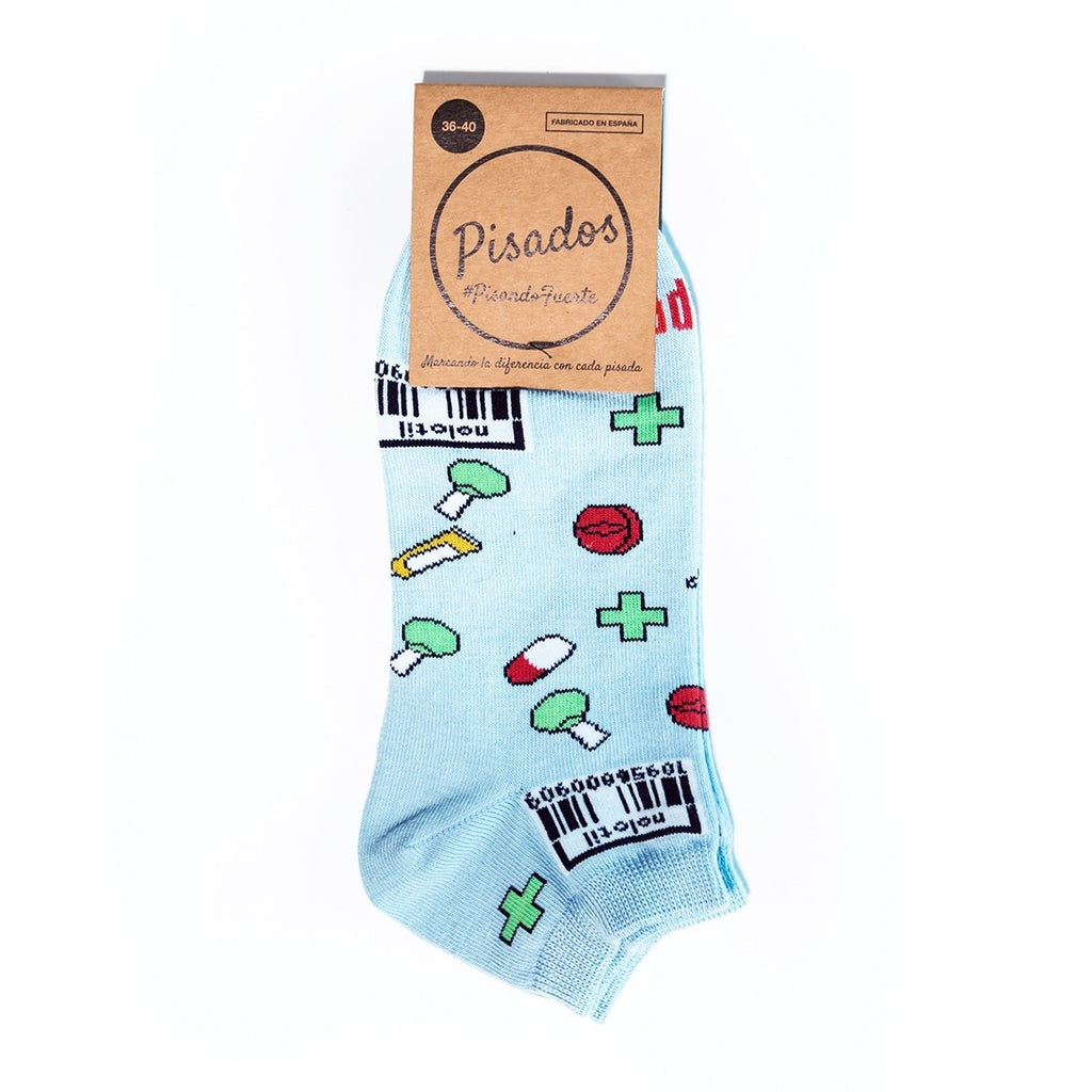 Experience ultimate comfort and durability with our Cotton Ankle Socks, perfect for hospital work, home and travel. Made from high-quality cotton, these unisex socks feature a seamless design and are adorned with pharma print in a stylish shade of blue.