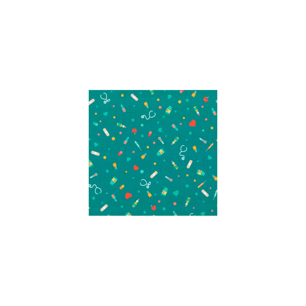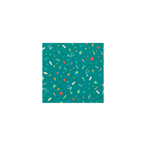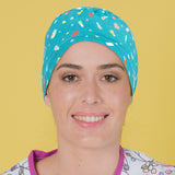 This surgical cap is specifically designed for individuals with long hair, featuring an elastic band at the back for a comfortable fit. The coloured medical instruments in turquoise design add a touch of style to this functional product.