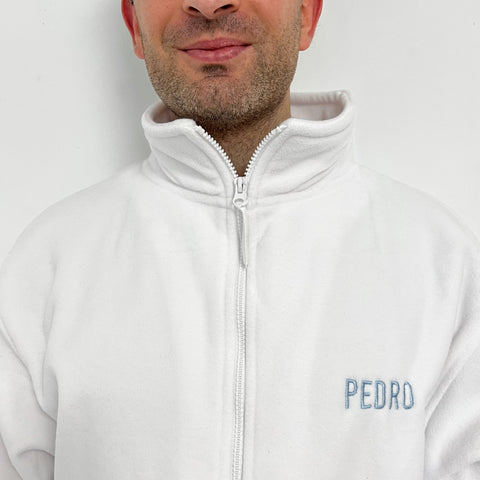 Personalised Custom Name Men Fleece Jacket White Design 2