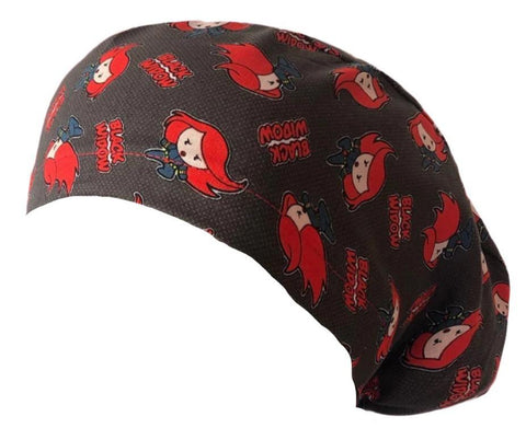 Long Hair Surgical Cap with Elastic Band - Black Widow