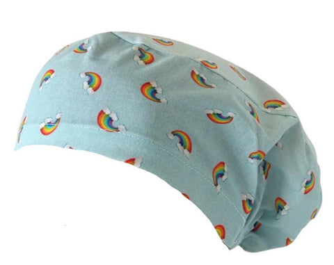 Long Hair Surgical Cap with Elastic Band - Blue Rainbow