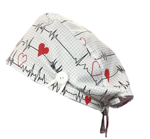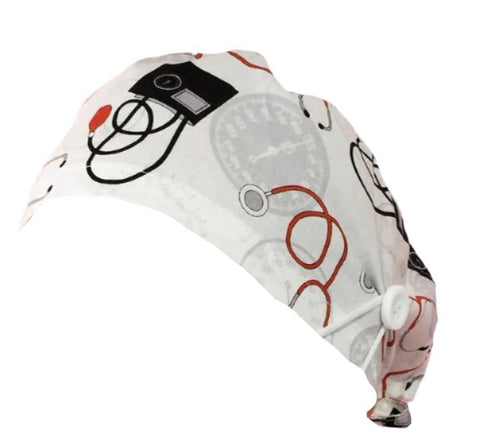 Short Hair Surgical Cap with with Buttons and Adjustable Laces - Stethoscope Printed