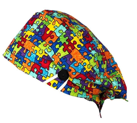 Short Hair Surgical Cap with with Buttons and Adjustable Laces - Trencadis