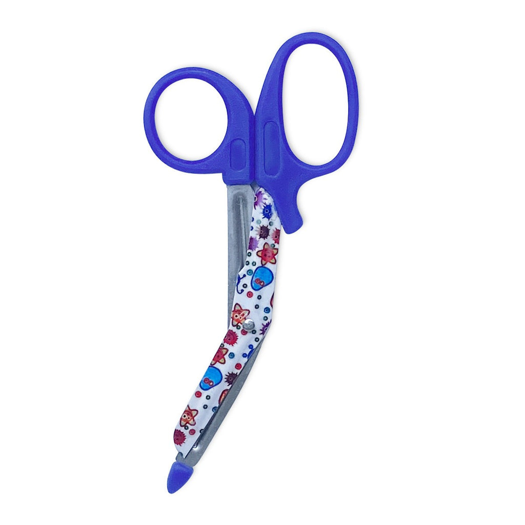 The Bandage Scissors is an essential and adaptable tool for a wide range of medical and surgical applications. These scissors are specifically designed for cutting bandages and clothing, and feature a decorative blade adorned with printed bacteria in various colors.