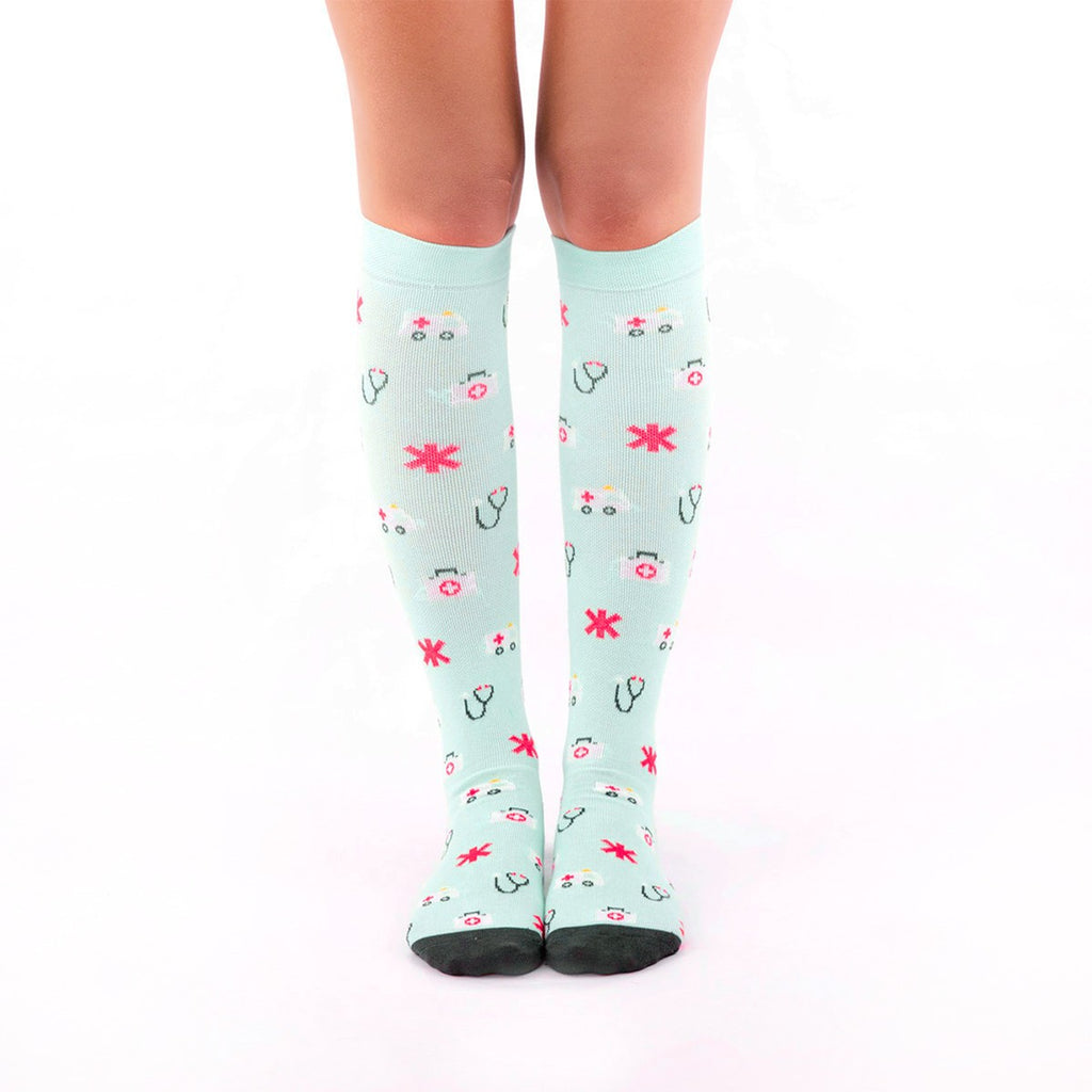 Certified Compression Socks Nurse Doctor Hospital Work & Travel Ambulances Green Unisex