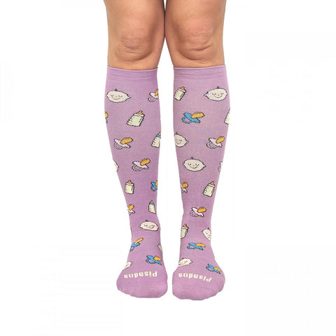 The Compression Socks Blue Midwife are carefully crafted for medical practitioners and individuals alike, incorporating a blend of cotton and lycra materials. Featuring a midwife print design, these socks offer superior comfort and fashionable flair for extended periods of work and travel.