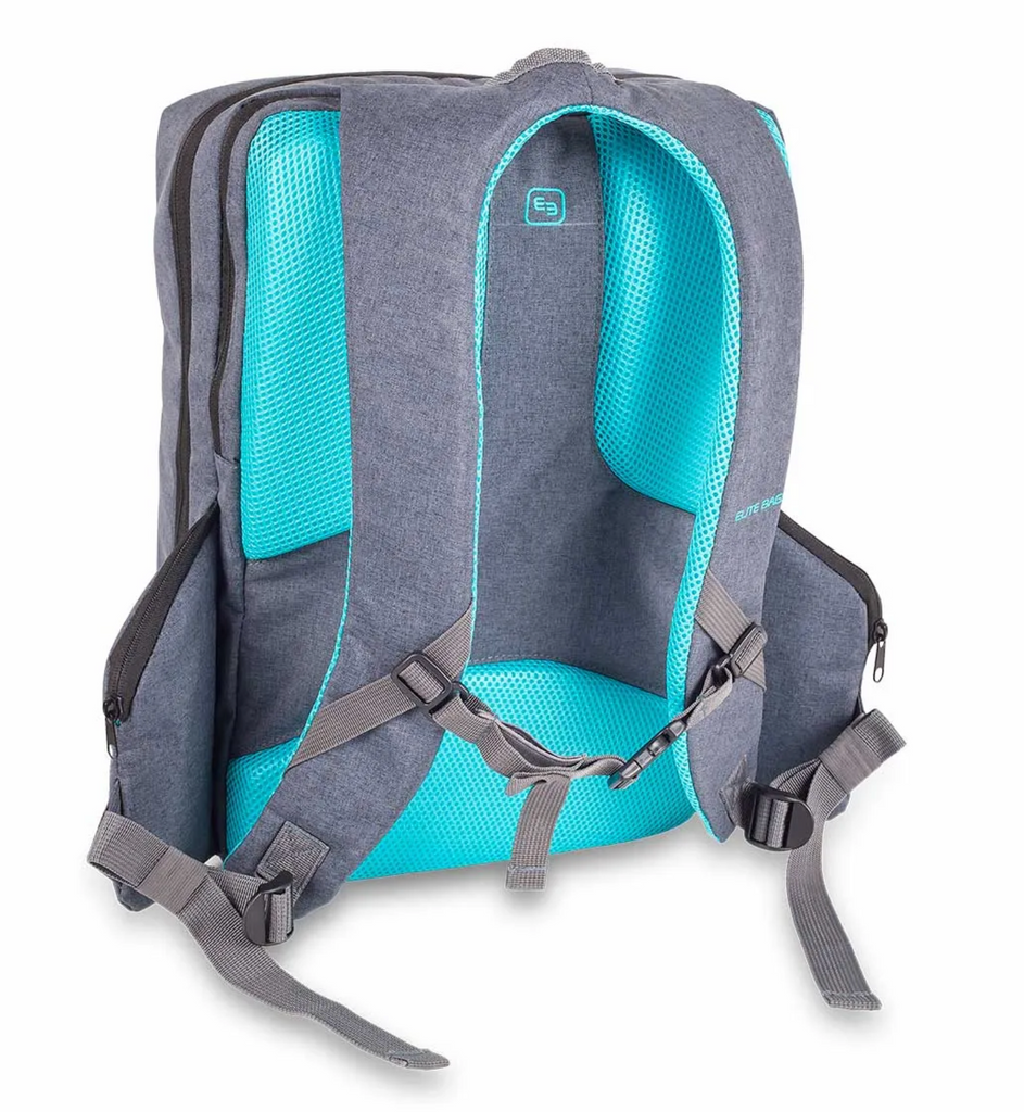 The compact and elegant Elite CITY’S is an ergonomically designed, multifunctional backpack, featuring a highly structured interior with clear, PVC fronted pockets and removable pouches, ideal for storing medical materials and clinical instruments for home visits or on call stay overs.