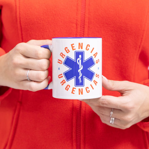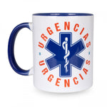 This exquisitely designed Classic Mug Emergency - Urgencias in Blue Ceramic features a captivating image, expertly crafted for a distinctive look.
