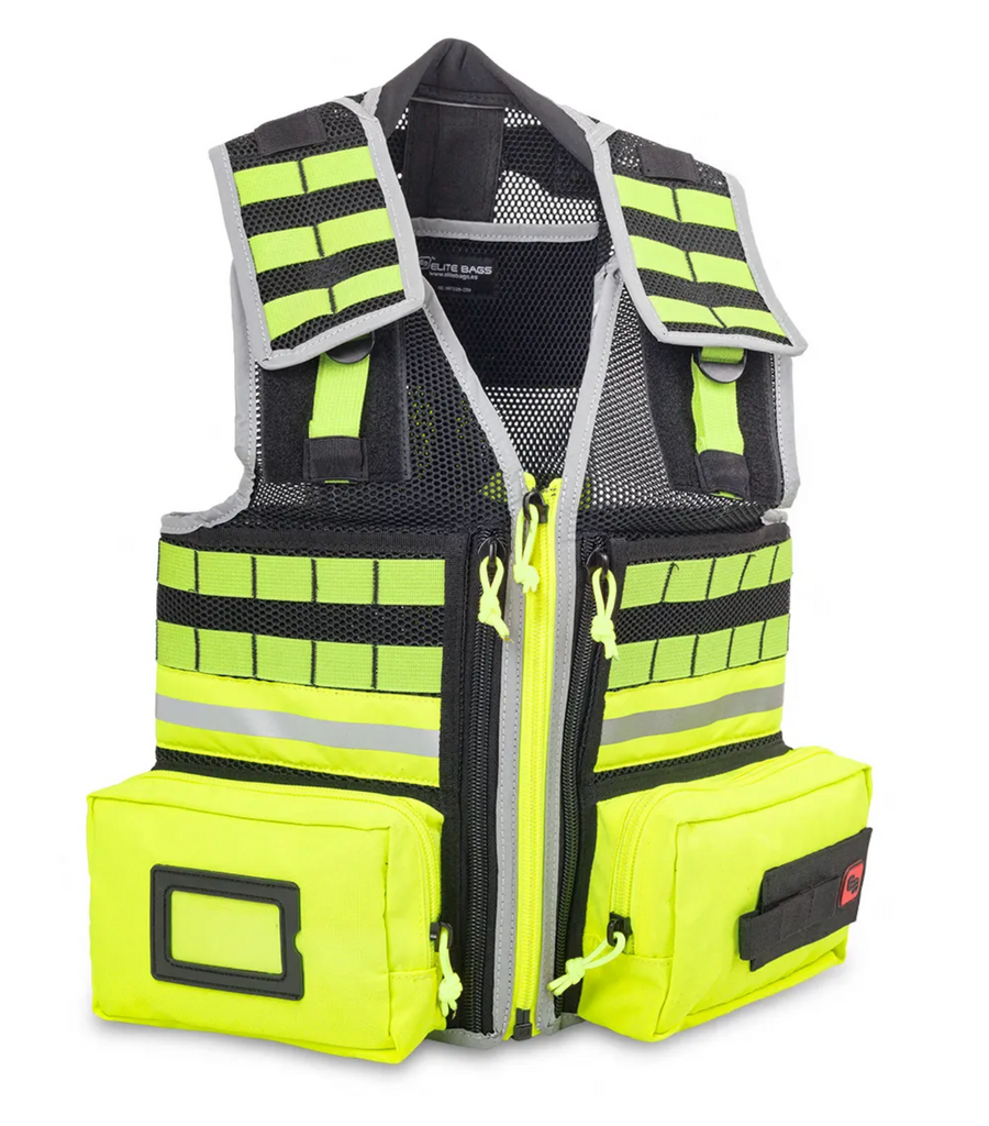 The Elite E-VEST’S is the ultimate in comfort and flexibility when it comes to carrying medical essentials. Its colouration and high vis banding ensure the wearer remains visible, even in poor lighting and identifies them as emergency personnel.