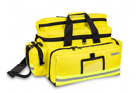 This large emergency holdall is ideal for carrying materials needed for Basic Life Support (BLS). Featuring a spacious main compartment, configurable using removable Velcro dividers, a foldout lid with full length zips and internal mesh pockets. Four large external side pockets are each furnished with, easy-grab, colour coded zip tabs. This colour coding conforms with the internationally recognised convention for organising medical supplies, allocating space to stow respiratory, circulatory, surgical and paediatric materials.