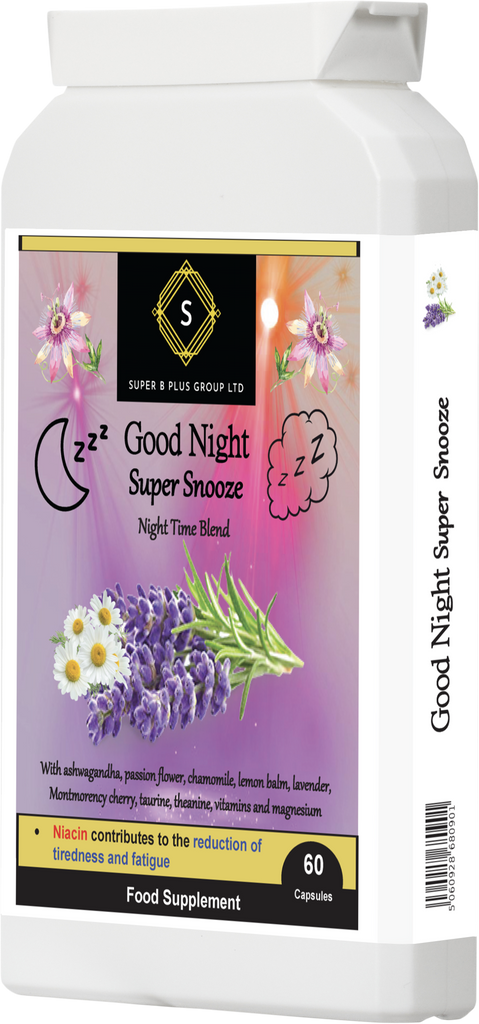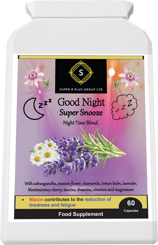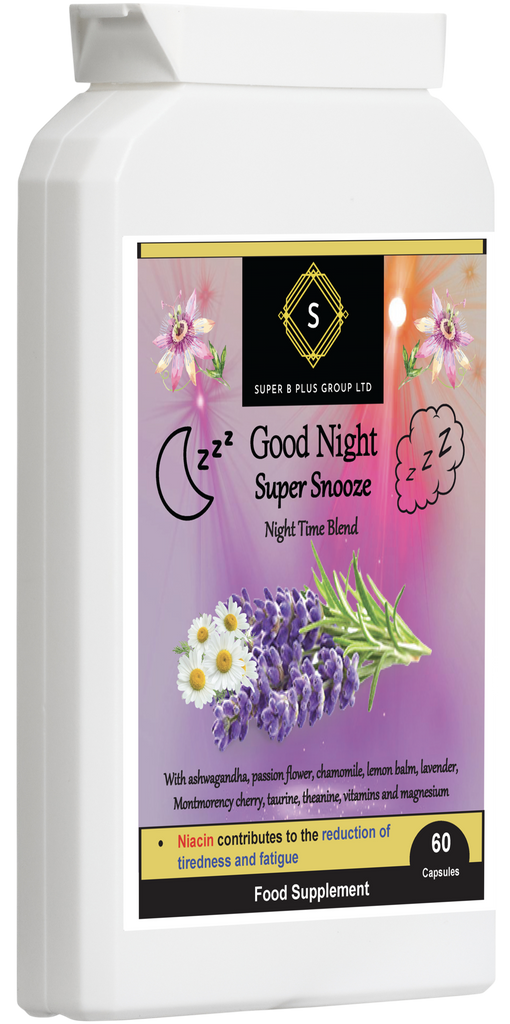In today's fast-paced world, restful sleep can feel like a distant dream. Good Night Super Snooze is a thoughtfully formulated nighttime blend designed to gently guide you towards peaceful slumber and leave you feeling refreshed and energized upon waking. Our unique combination of carefully selected herbs, amino acids, vitamins, and minerals works synergistically to support relaxation, reduce stress, and promote a healthy sleep cycle – a must-have in these hectic times!