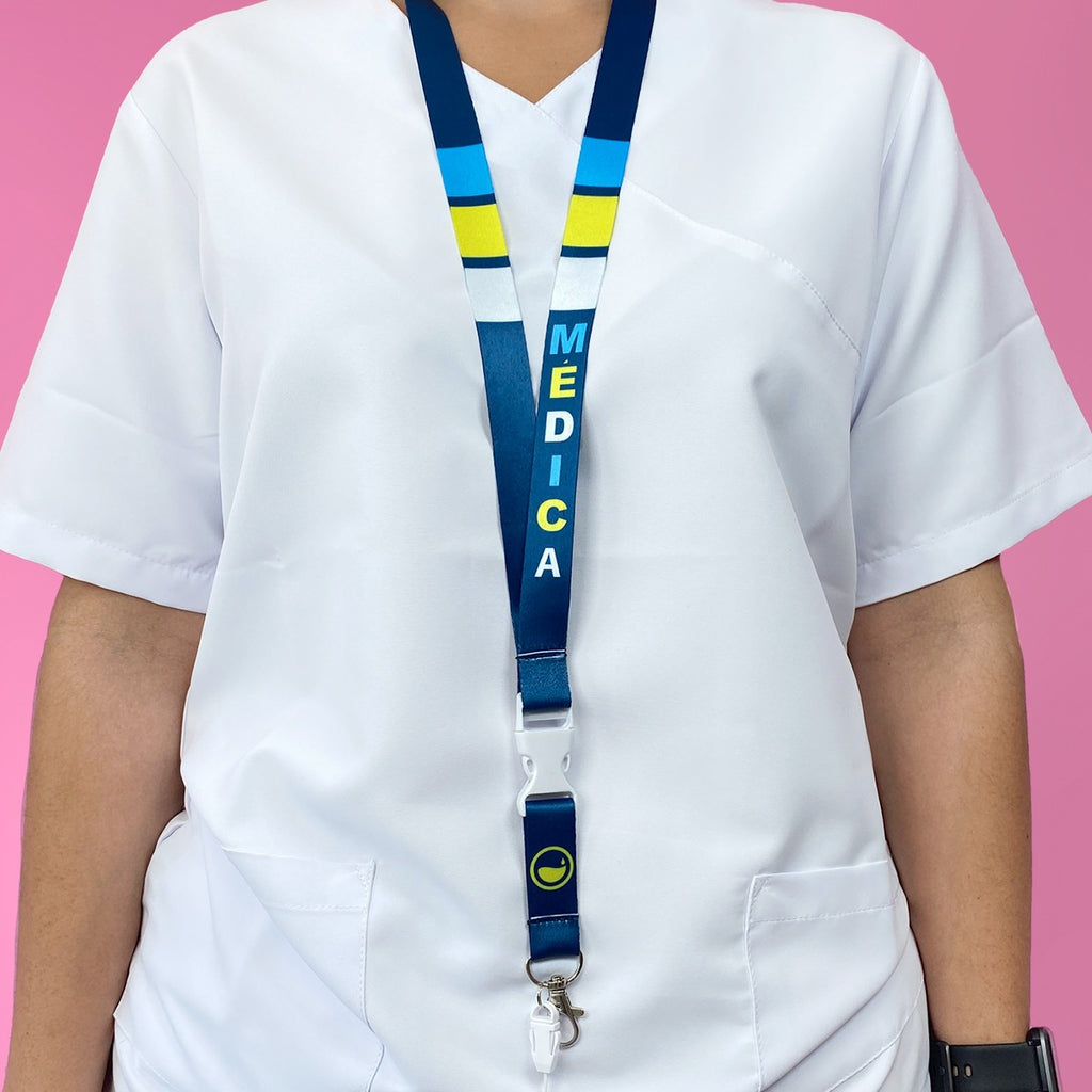 This lanyard is a must-have from our 80's Retro Collection. It features a Trident Hook & Carabiner & Safety Clip for added convenience and safety, making it perfect for healthcare professionals. With a versatile design, it can be used for ID cards, scissors, tweezers, and keys, making it an essential tool for any work setting. Its exclusive and practical design is ideal for doctors.