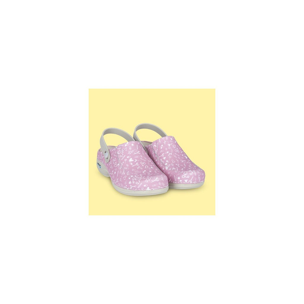 This printed leather clogs, from the Sweet Collection, is specifically tailored for medical professionals and can be conveniently washed in a washing machine at temperatures up to 30ºC.