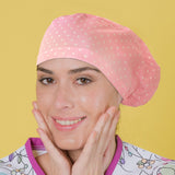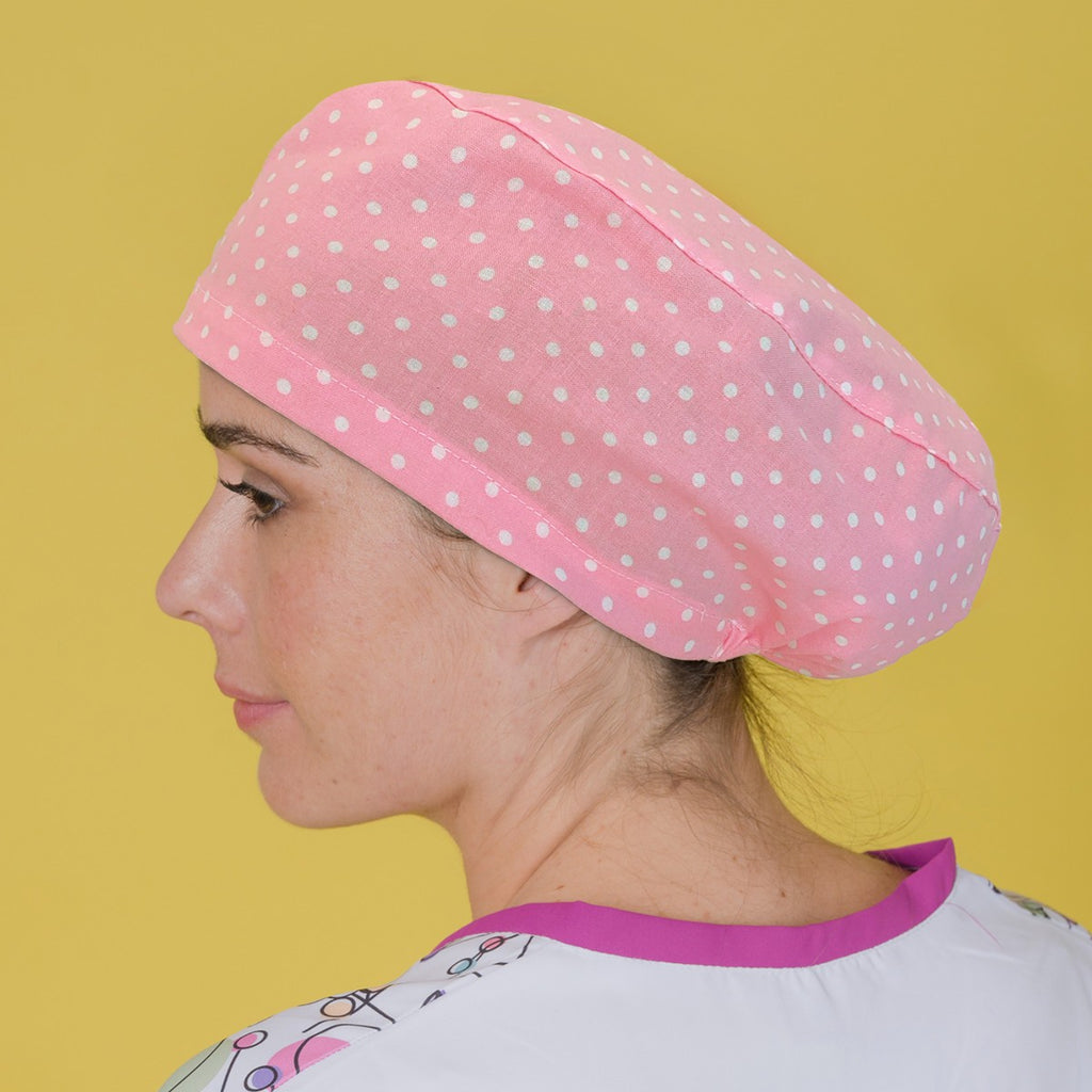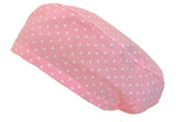 Long Hair Surgical Cap with Elastic Band - Dots over Pink