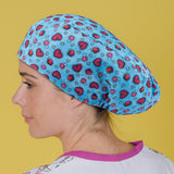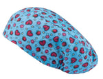 Long Hair Surgical Cap with Elastic Band - Hearts and Mushrooms