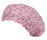 Long Hair Surgical Cap with Elastic Band - Hearts over White