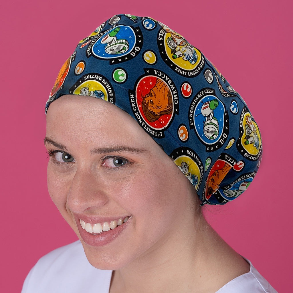 This surgical cap is specifically designed for individuals with long hair, featuring an elastic band at the back for a comfortable fit. The coloured marine rebel staff design add a touch of style to this functional product.