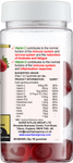 INGREDIENTS: Glucose Syrup, Sucrose, Water, Gelling Agents (Gelatine, Pectin, Gellan Gum), Sweetener (Sorbitol), Vitamin C (Ascorbic Acid), Apple Juice Concentrate, Acids (Citric Acid, Malic Acid), Vitamin E (D-Alpha Tocopheryl Acetate), Natural Strawberry Flavour, Vitamin B12 (Cyanocobalamin), Pantothenic Acid (D-Calcium Pantothenate), Vegetable Oils (Coconut Oil, Canola Oil), Glazing Agent (Carnauba Wax), Vitamin B6 (Pyridoxine Hydrochloride), Vitamin A (Retinyl Palmitate), Sunflower Seed Oil, Folic Acid, Colour (Carmine), Biotin, Iodine (Potassium Iodide), Inositol, Vitamin D (Cholecalciferol), Zinc (Zinc Citrate).
