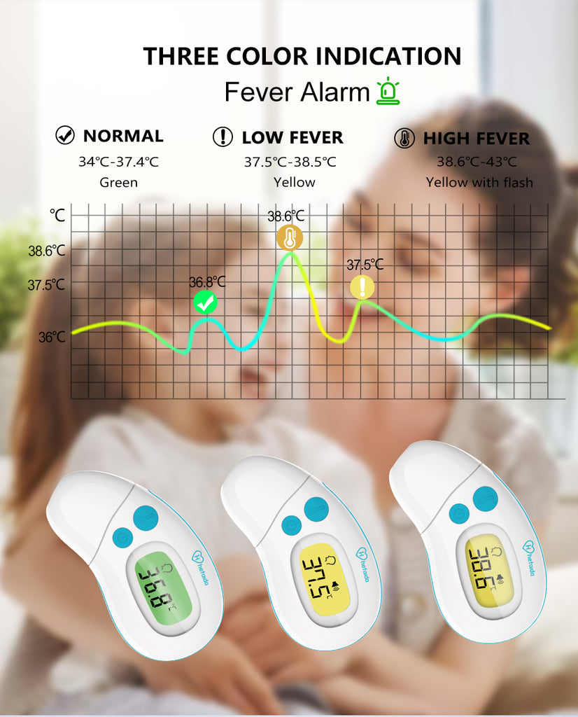 - 38.1~43.0℃: yellow flashing (High fever)
