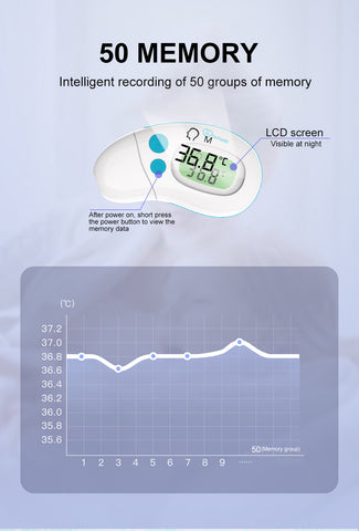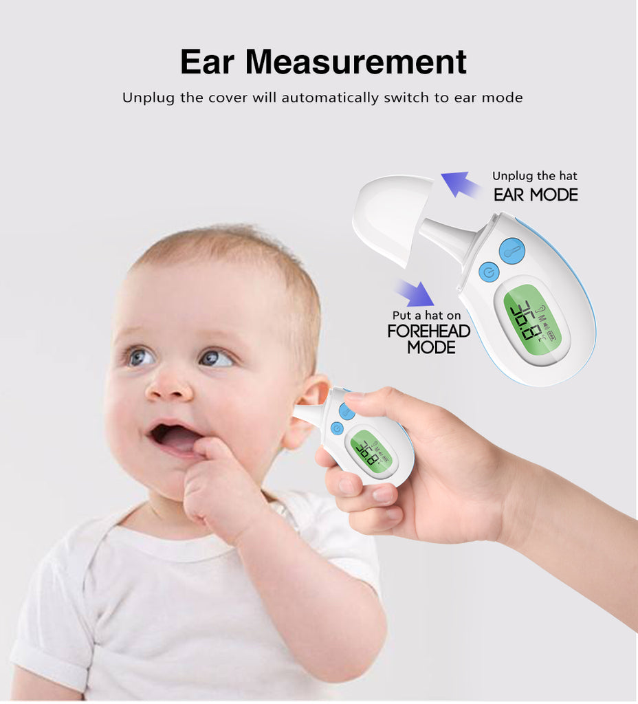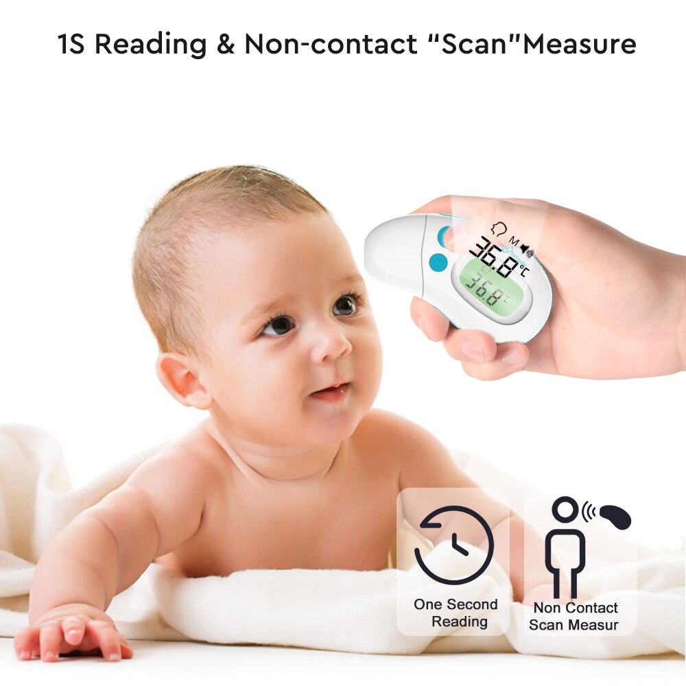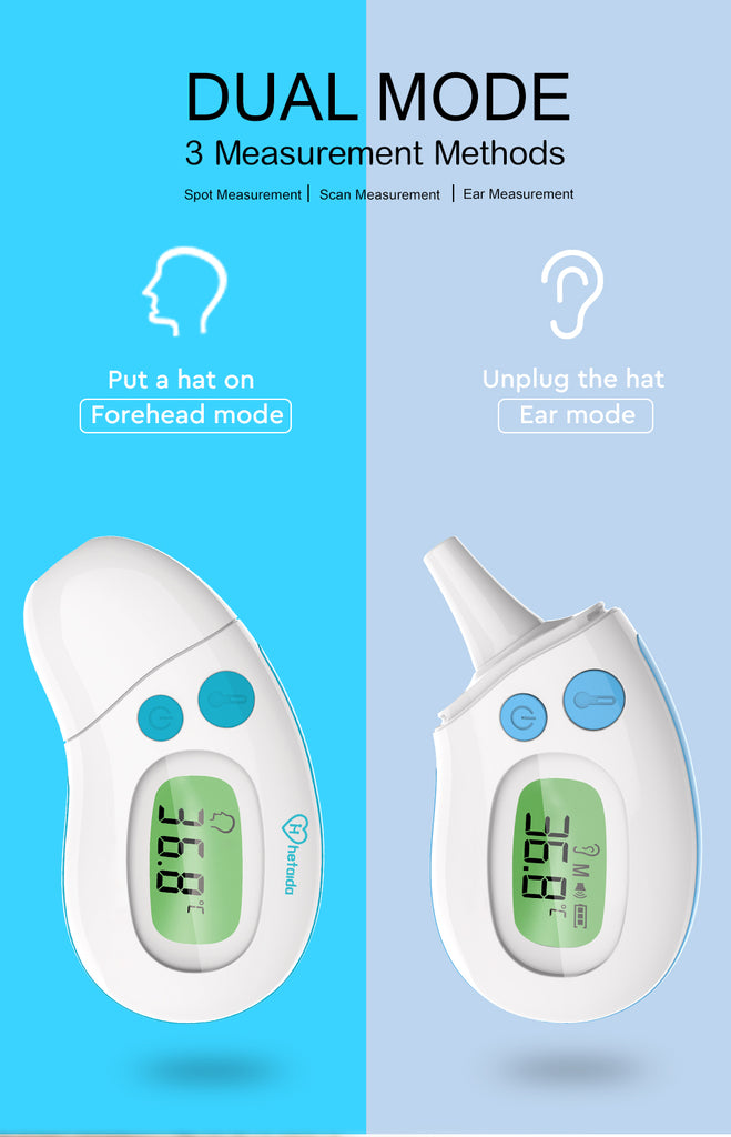 This non-contact infrared digital thermometer is suitable for measuring body temperature in babies, kids, and adults, and can be used in both forehead and ear mode.