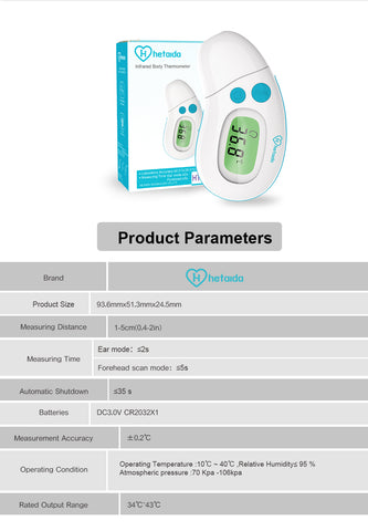 Brand Name: HeTaiDa ( 8 Authoritative Quality Certificated Related to Thermometer for Adults Forehead : CFDA/CE/FDA/ISO/RoHS/CPA/FCC/SMETA)