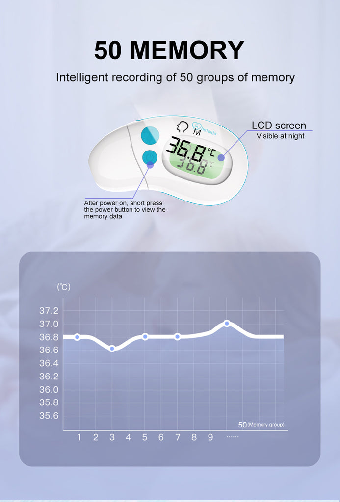 This thermometer is designed with a sleek appearance, smooth lines, and ergonomic features, making it easy to use and comfortable to hold. Lightweight and portable, it is suitable for measuring body temperature in both forehead and ear mode, making it convenient for use with babies, kids, and adults.
