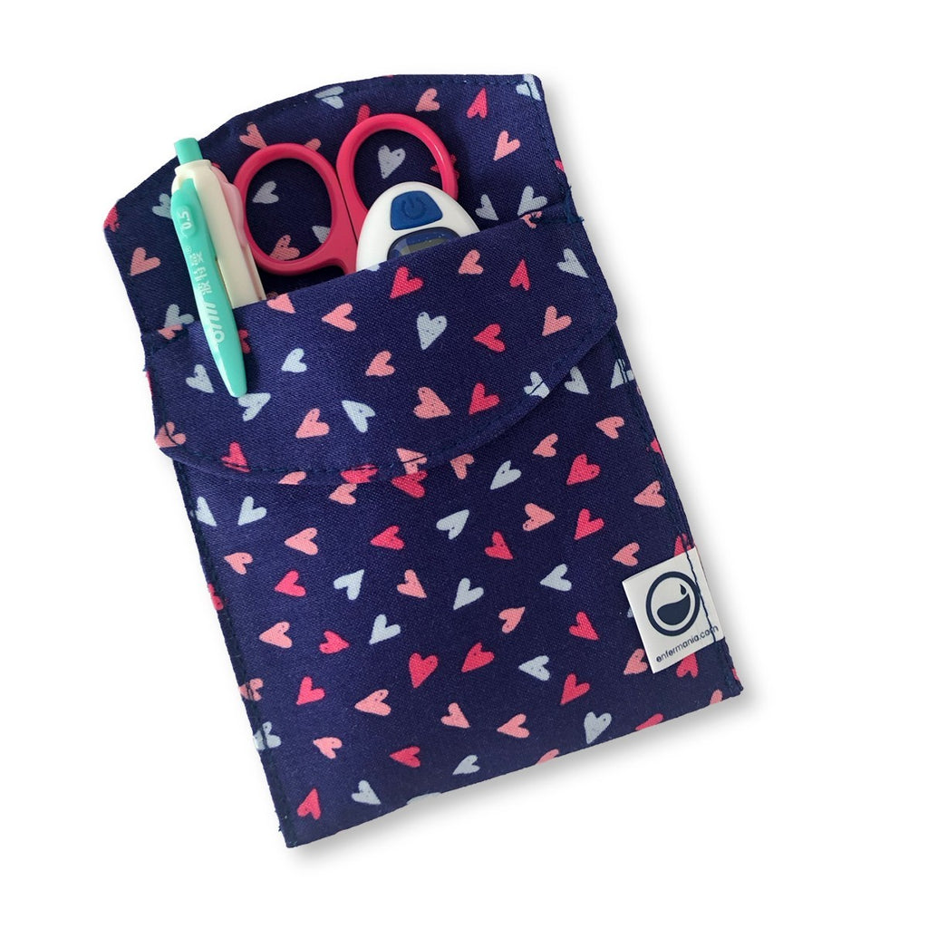 Nurse Pocket Protector Organiser 100% Cotton Navy Blue Hearts