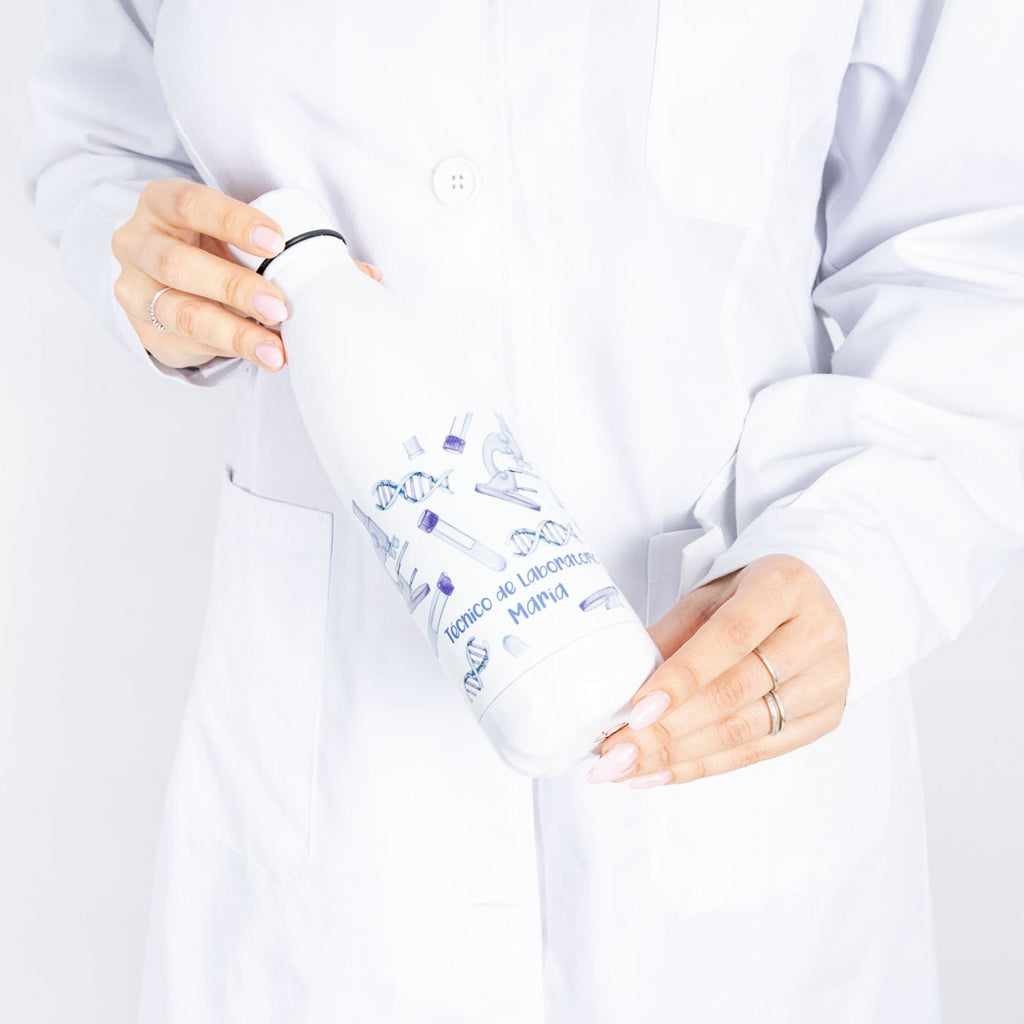 This elegant stainless steel thermo bottle is ideal for Laboratory Technicians or as a thoughtful gift for friends and loved ones. The concept of "El arte de cuidar" ("The Art of Caring") embodies a thoughtful and conscientious approach to self-care and caring for others.