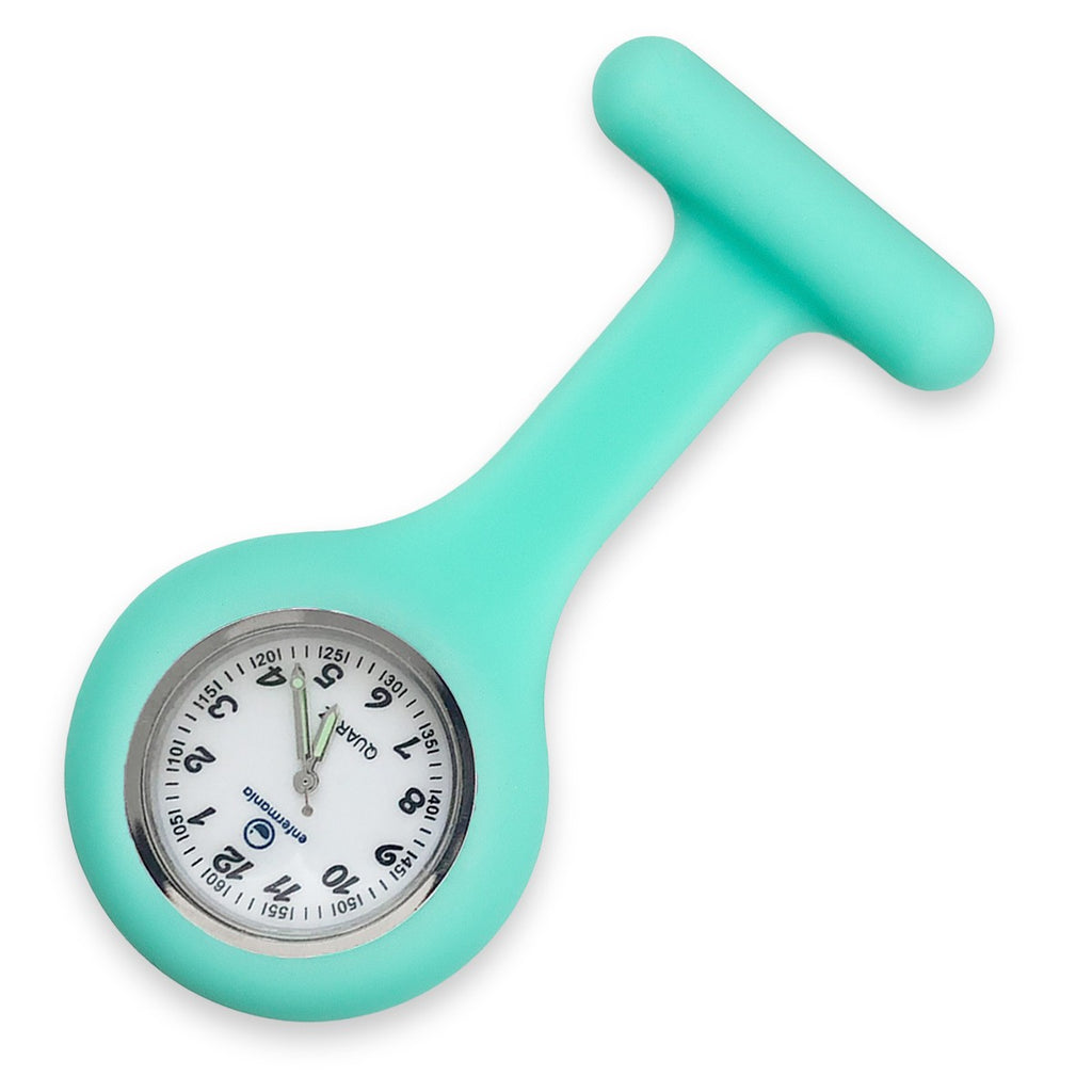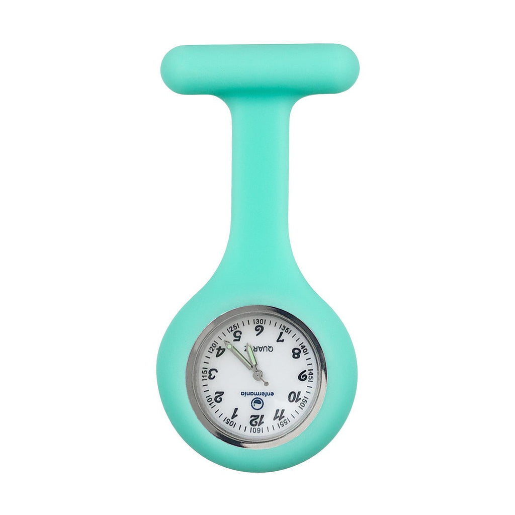 Silicone Nurse Fob Watch Quartz Machinery with Brooch Glow in the Dark Aqua