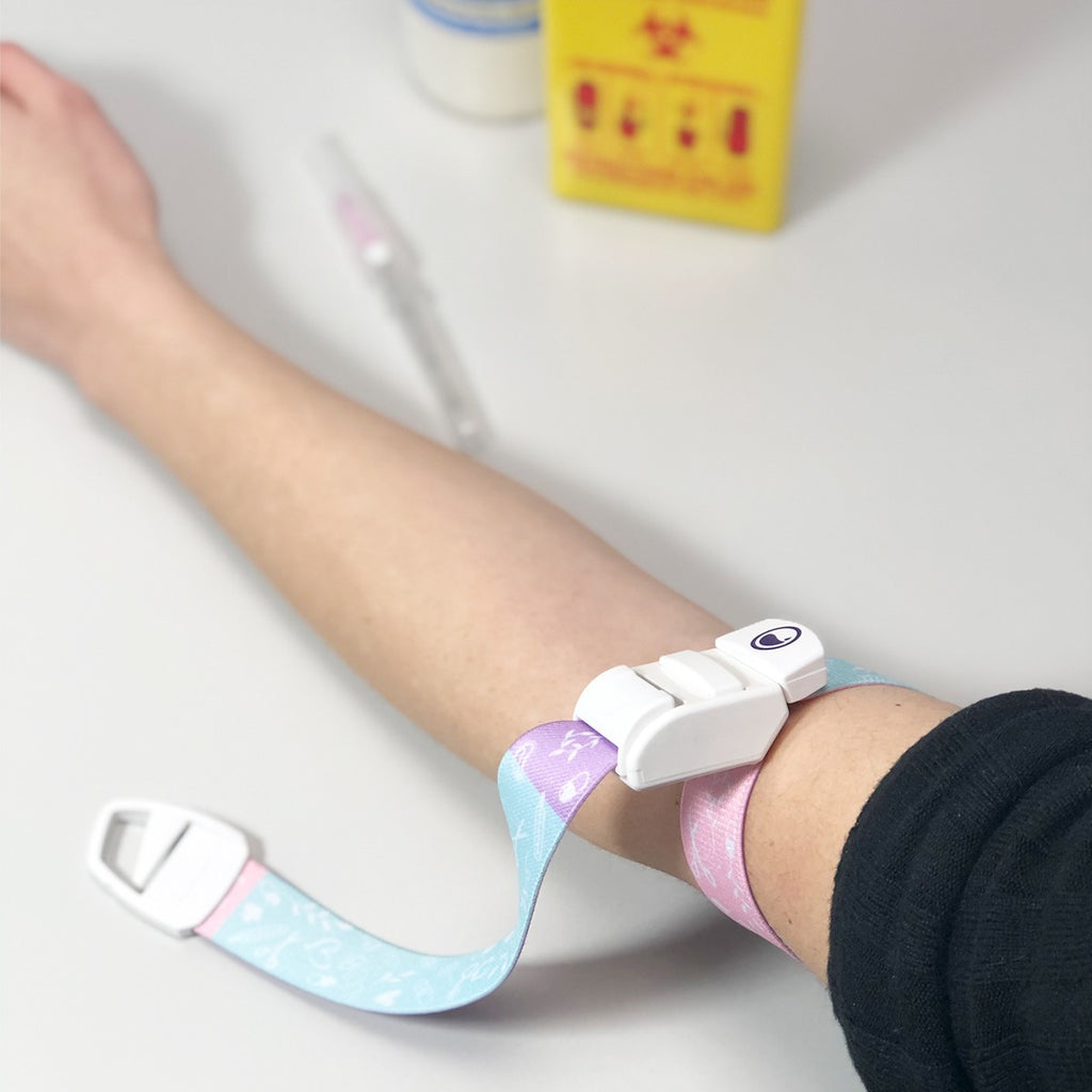 The Tourniquet Venous (Vein) Clip Compressor from the Sweet Collection is a washable, latex-free tool specifically designed for facilitating blood extractions.