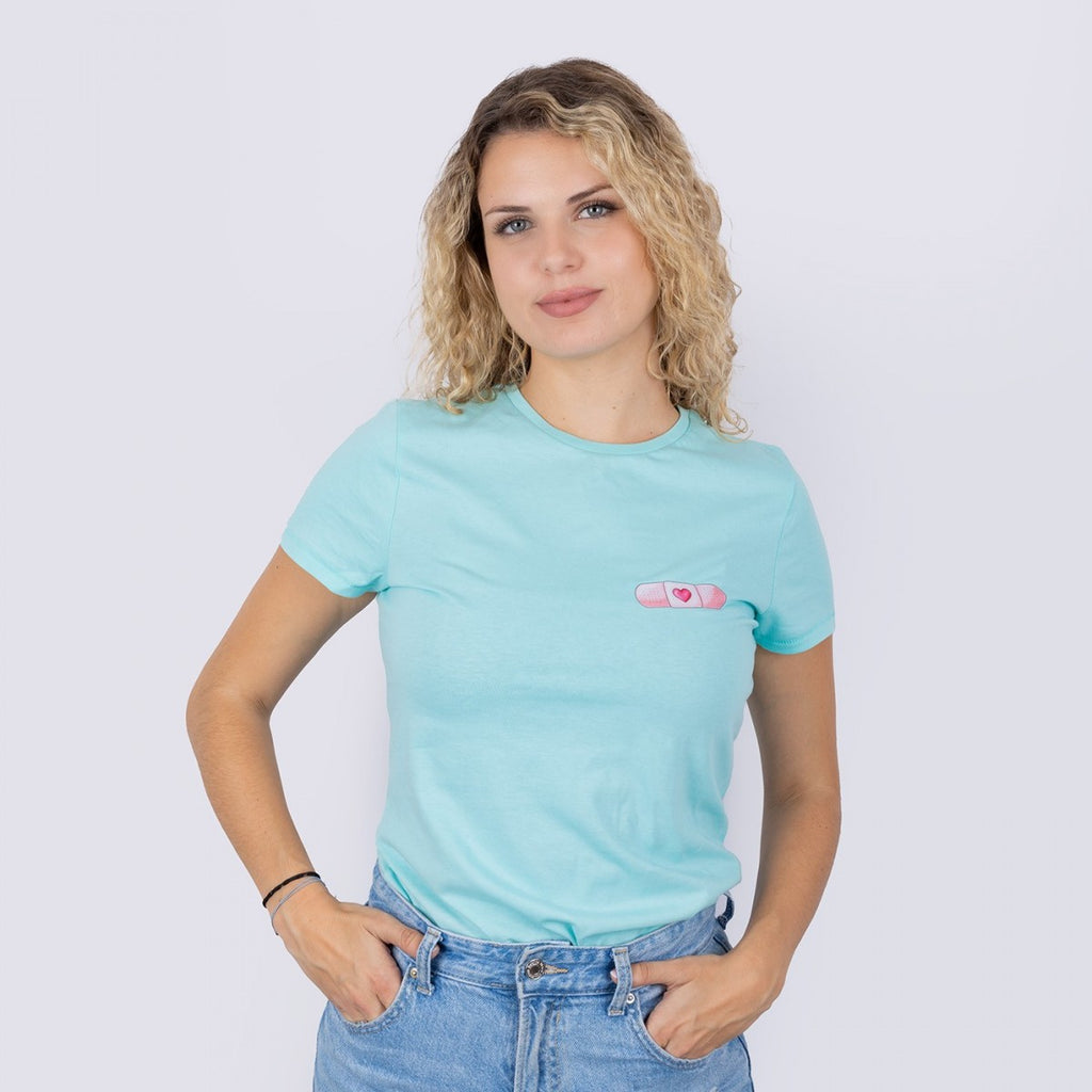 Women's Fitted Eco-Friendly Medical T-Shirt Band-Aid Aqua Organic Cotton
