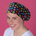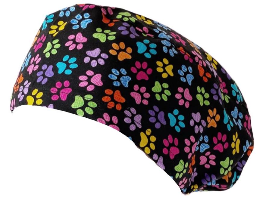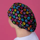 Long Hair Surgical Cap with Elastic Band - Paw Print