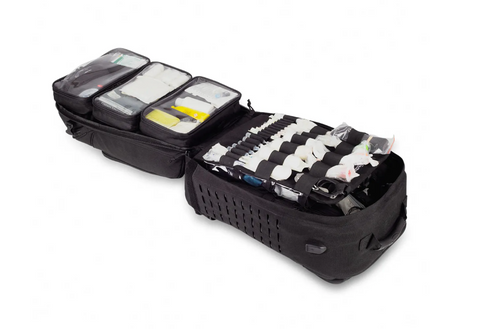 The pinnacle of feedback driven design, this robust and comfortable backpack includes all the features of the PARAMED’S, including compartmentalised layout, removable sealed, clear topped pouches, fold out central flap and pullout waterproof cover.