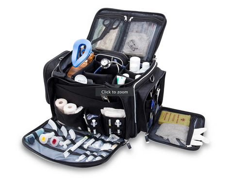 Features a high-capacity front pocket with elastic straps to secure a wide range of bandages, syringes and other medical components. Tall internal pockets, perfect for carrying liquids. A removable isothermal pouch for 41 medical ampoules. Meshed zipped pockets allow stored contents to be easily seen even when closed.