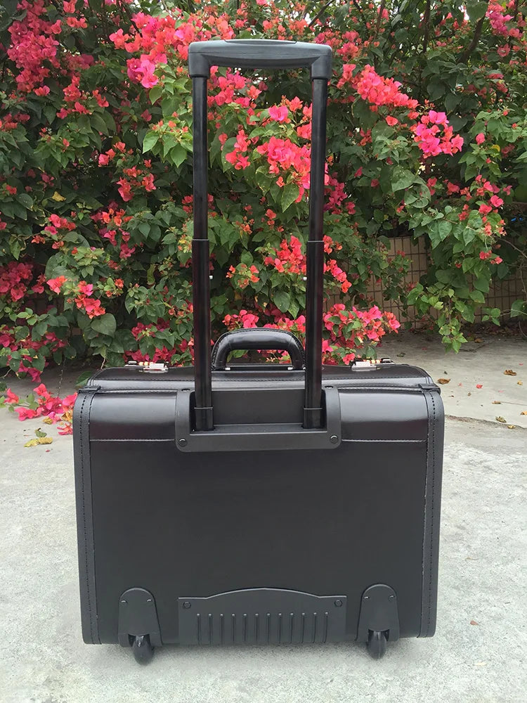 Doctors Bag Leather Pilot Wheel Suitcases Business Trolley