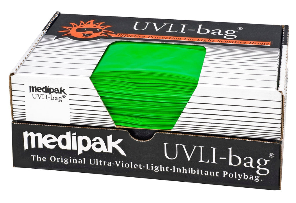 For 450ml and smaller IV bags. Green UVLI™ covers provide a convenient, cost-effective, and disposable solution for protecting light-sensitive medications during transportation and administration. The semi-transparency of our Green UVLI™ makes it easy to read labels and levels underneath without lifting the cover. Our covers and bags exceed the United States Pharmacopoeia Standard blocking over 90% of harmful UV light between 290nm and 450nm, so you can protect with confidence. Regular UVLI™ covers are fully sealed on three sides.