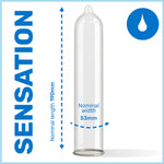 Pasante Infinity condoms are lubricated with a non-spermicidal Lidocaine Hydrochloride (1%) lubricant which may delay male climax. Parallel, smooth, transparent and teat-ended.