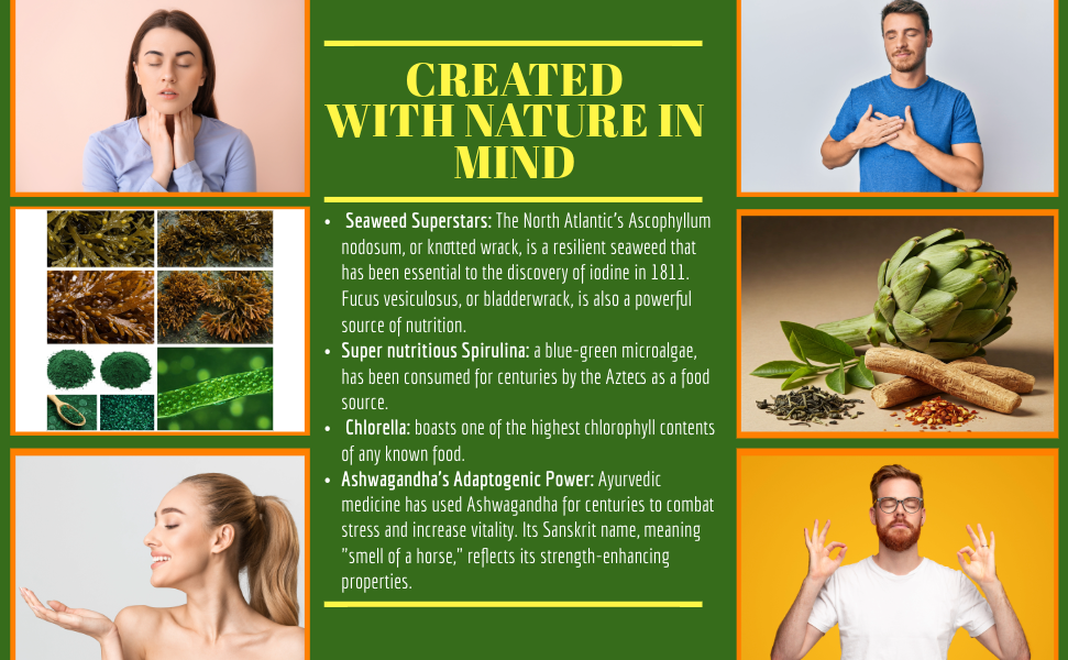 • Nutrient-Dense Seaweeds: Our organic Ascophyllum nodosum and Fucus vesiculosus seaweeds are naturally rich in minerals and micronutrients, including selenium, tyrosine, zinc, copper, and vitamins A, B2, B3, B6, and C, supporting iodine transport and metabolism. These seaweeds are also packed with antioxidants, potentially offering even more protection than some fruits and vegetables.*