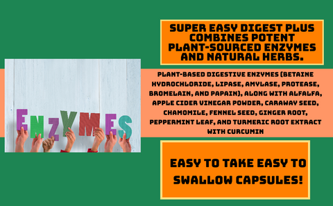 Super Easy Digest Plus combines potent plant-sourced enzymes and herbs - providing an effective and natural digestive aid!