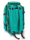 Movable internal separators and straps provide secure storage for a wide range of items, including an oxygen bottle and bag valve mask. Tough D-rings with reinforced strapping allow for both the attachment of padded shoulder straps and cables used during air-lift evacuations.